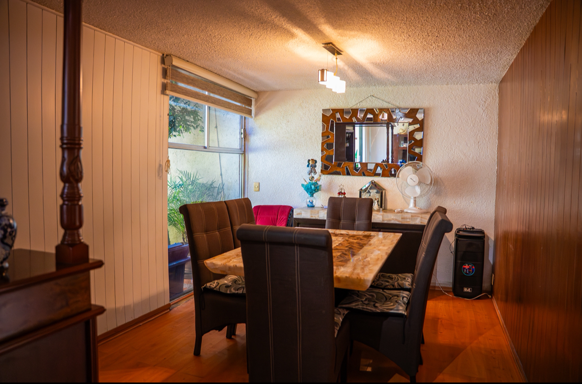 Amplia y funcional casa ubicada en la Colonia Las Américas, Naucalpan. Ideal para quienes buscan comodidad, buena distribución de áreas y espacios para toda la familia. En la Planta Baja encontramos un pequeño recibidor, sala y comedor amplios con excelente iluminación natural, medio baño para visitas, cocina integral en perfecto estado, patio de servicio con área de lavado, cuarto de servicio con baño completo, patio trasero con jardineras, patio delantero con espacio para estacionar 2 autos. En la Planta Alta tenemos sala de TV, 3 recámaras con clóset y 1 baño completo.